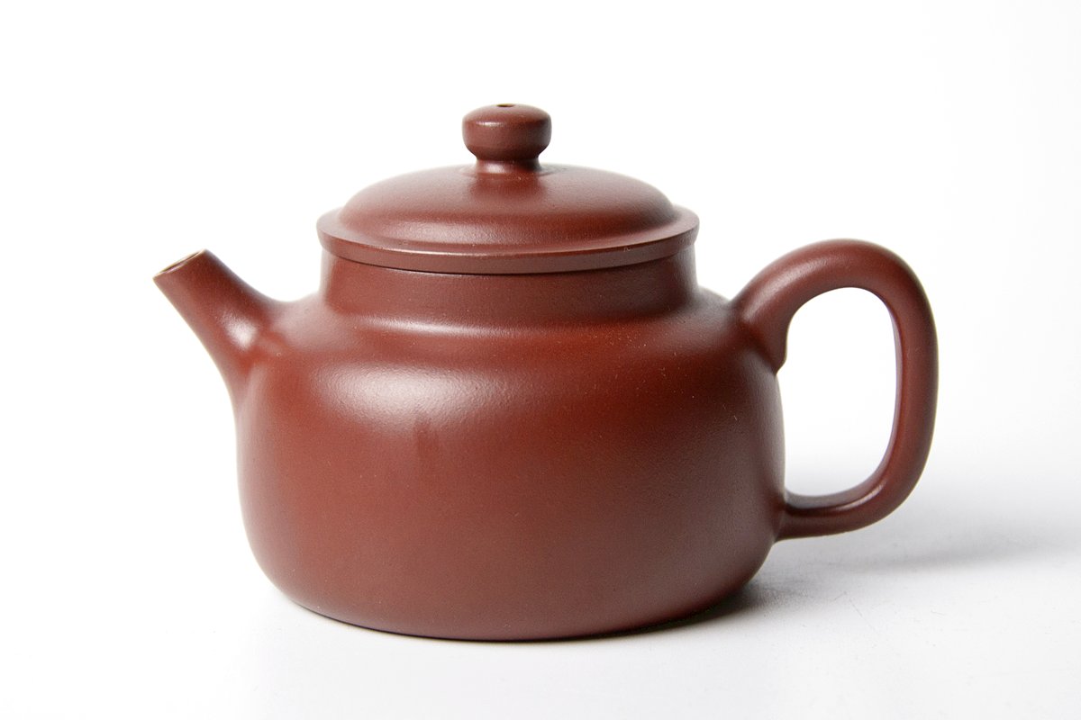 Красивый и элегантный чайник из исинской глины разновидности Хун Ни. Небольшой объем, качество исполнения и удовольствие от использования в одном предмете. Отличная симметрия, плотно притерта крышка, ровный и быстрый слив с исправно работающим водным замком. Чайник отлично подойдет для заваривания пуэров, хэй ча, улунов, красного чая и выдержанных белых.