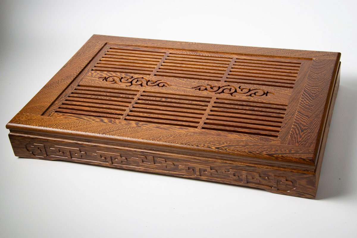 Роскошная, большая чабань для ваших незабываемых чайных церемоний. Сделана из дерева венге. Безупречное исполнение и отменное качество с идеальной проработкой каждой мелочи. Чайный стол имеет конструкцию со встроенным, пластиковым поддоном. Также в комплекте идет специальный сливной шланг и груша, которые можно подсоединять ко все тому же поддону.