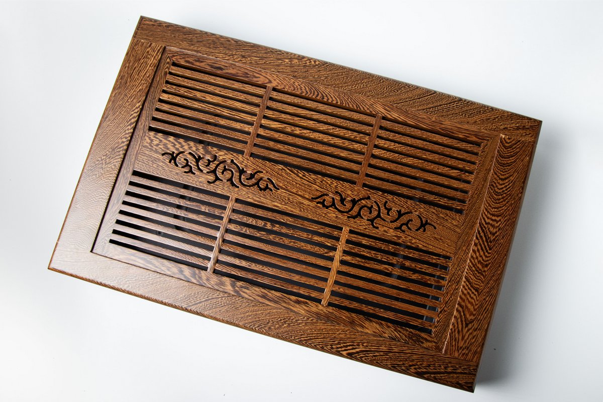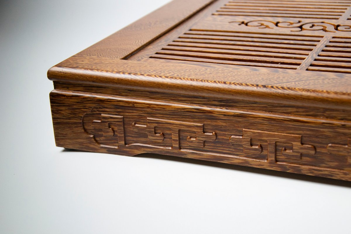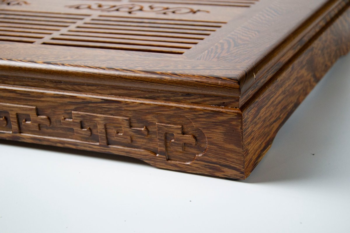 Роскошная, большая чабань для ваших незабываемых чайных церемоний. Сделана из дерева венге. Безупречное исполнение и отменное качество с идеальной проработкой каждой мелочи. Чайный стол имеет конструкцию со встроенным, пластиковым поддоном. Также в комплекте идет специальный сливной шланг и груша, которые можно подсоединять ко все тому же поддону.