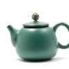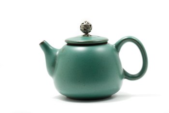 Элегантный и красивый керамический чайник. Снаружи покрыт тонким слоем глазури зелено-бирюзового цвета. Массивный, увесистый, имеет среднюю толщину стенок. Приятный цвет и матовая текстура. На крышке расположен красивый шарик-ручка из металла.