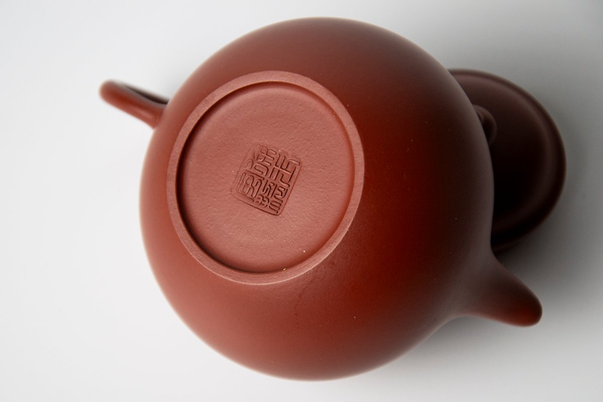 Элегантный и очаровательный малыш из исинской глины разновидности Хун Ни от Сюй Юфэна(徐玉凤). Тонкие стенки, прекрасное исполнение и филигранная проработка мелочей. Отличная геометрия и притертость крышки с исключением подтекания. Водный замок работает исправно и без нареканий. Идеальный вариант для заваривания выдержанных белых, улунов, красного чая и средневозрастных пуэров.