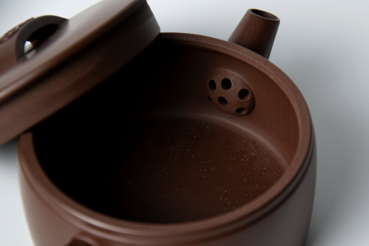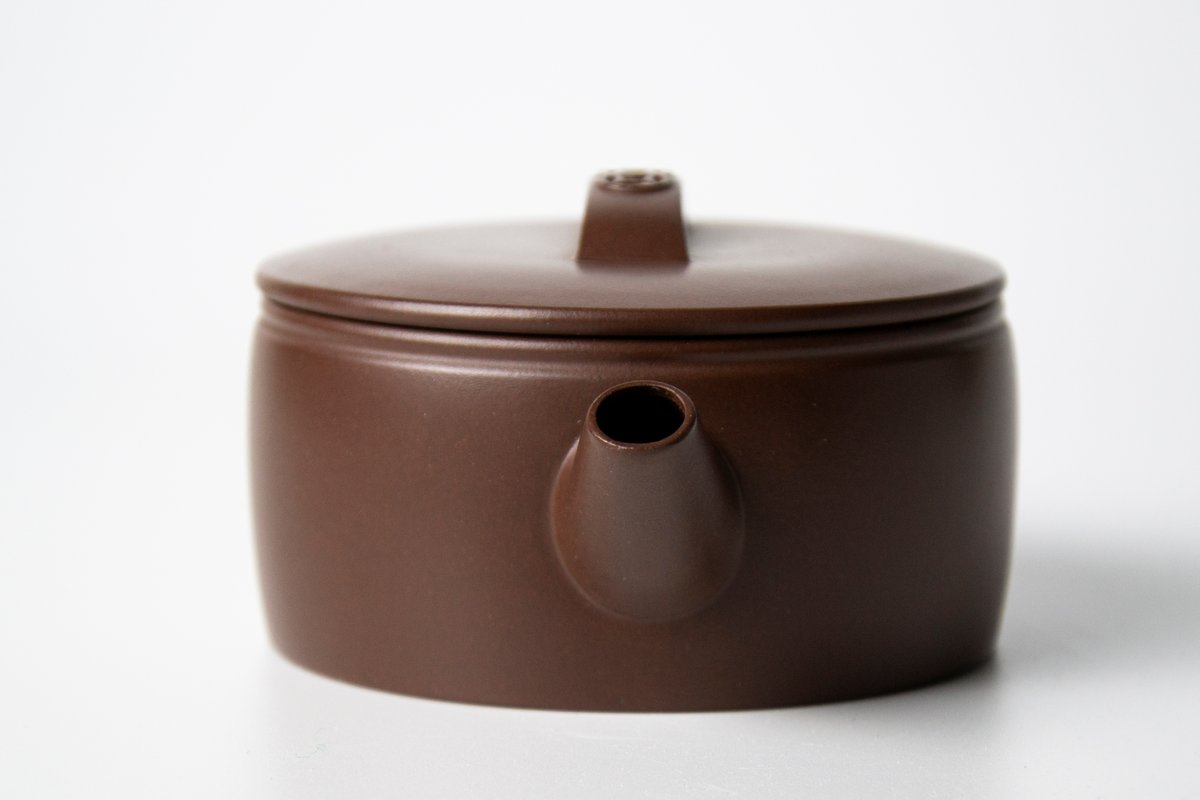 Чайник из исинской глины разновидности Цзы Ни от Сюй Юфэна(徐玉凤). Элегантный минимализм в традиционной форме Хань Ва. Шикарная геометрия и проработка деталей. Крышка притерта максимально плотно к основанию и исключает подтекания. Широкий носик обеспечивает максимально быстрый слив. Идеальный универсал, который подойдет для заваривания улунов, красного чая, пуэров и хэй ча.