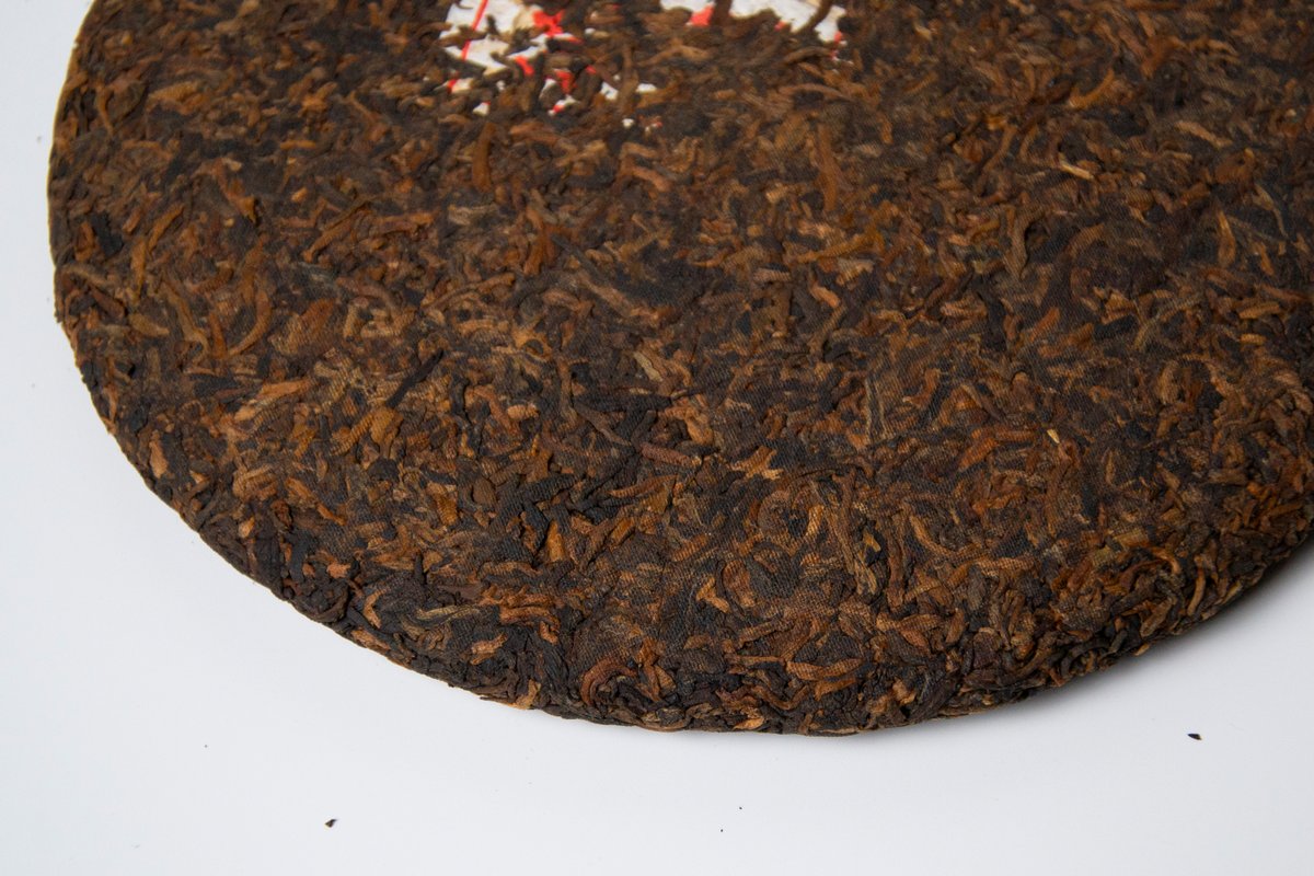 Аккуратный, фактурный и красивый блин, весом 357 гр., буквально усыпанный обилием почек. Прессовка умеренно мягкая, легко ломается и разбирается на маленькие жгутики. На разломе сырье чистое и однородное, с небольшим количеством черенков, отвечающих в рецепте за мягкую текстуру. Аромат сухого чая спокойный, выразительный, сбалансированный, дервесно-ореховый, с легкими ягодными оттенками.