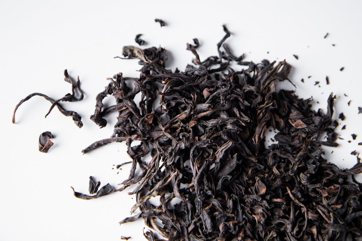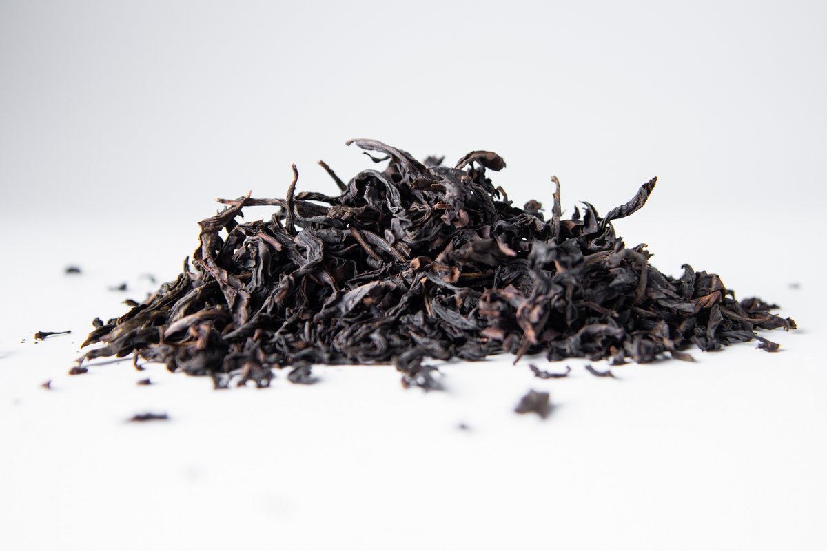 Внешний вид – однородные, крупные, продольно и плотно скрученные, изогнутые листики коричневато-бурого цвета с лиловым отливом. Аромат сухого чая глубокий, мягкий, легкий, древесно-пряный, фруктовый, с нюансами выпечки и ягод.