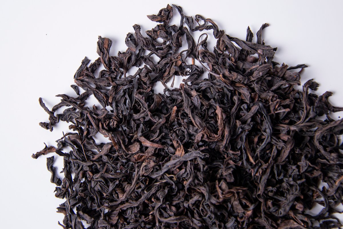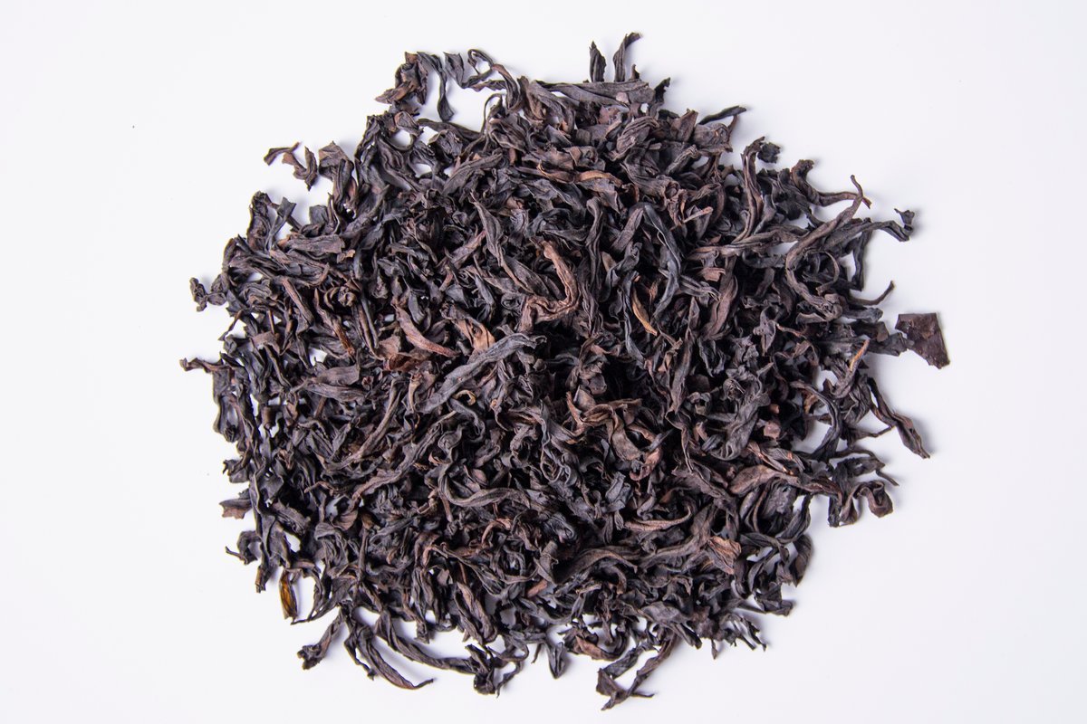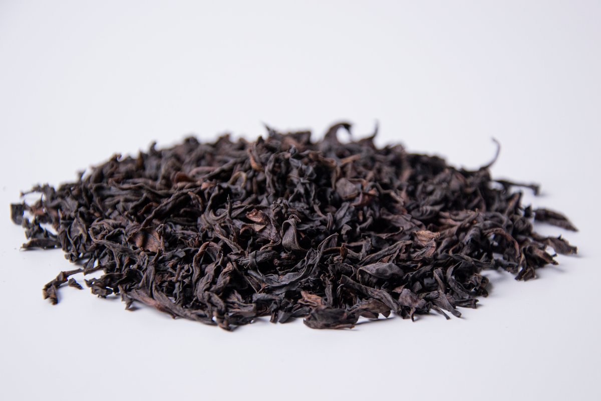 Внешний вид – маленькие жгутики продольной скрутки, буро-коричневого цвета с лиловыми оттенками. Аромат сухого чая сильный, выразительный, сбалансированный и глубокий, пряно-фруктовый, с хлебными, древесными и табачными нюансами.