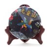 Внешний вид чая – небольшая, круглая лепешка весом 100 гр. Прессовка умеренно плотная, блин легко ломается руками или расслаивается пуэрным ножом. На разломе чай однородный, чистый, без грязи и пыли, содержит небольшое количество черенков. Аромат сухого чая мягкий, древесно-ореховый, с тонкими нюансами ванили. Настой яркий, насыщенный, чистый, интенсивно-темного оттенка.