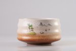 Тяван для заваривания японского порошкового чая матча. Керамическое основание, облитое слоем глазури, поверх которой нанесен красивый и минималистичный рисунок в виде пейзажа. Шикарный атрибут, который органично впишется в ваши утренние и вечерние чайные церемонии.